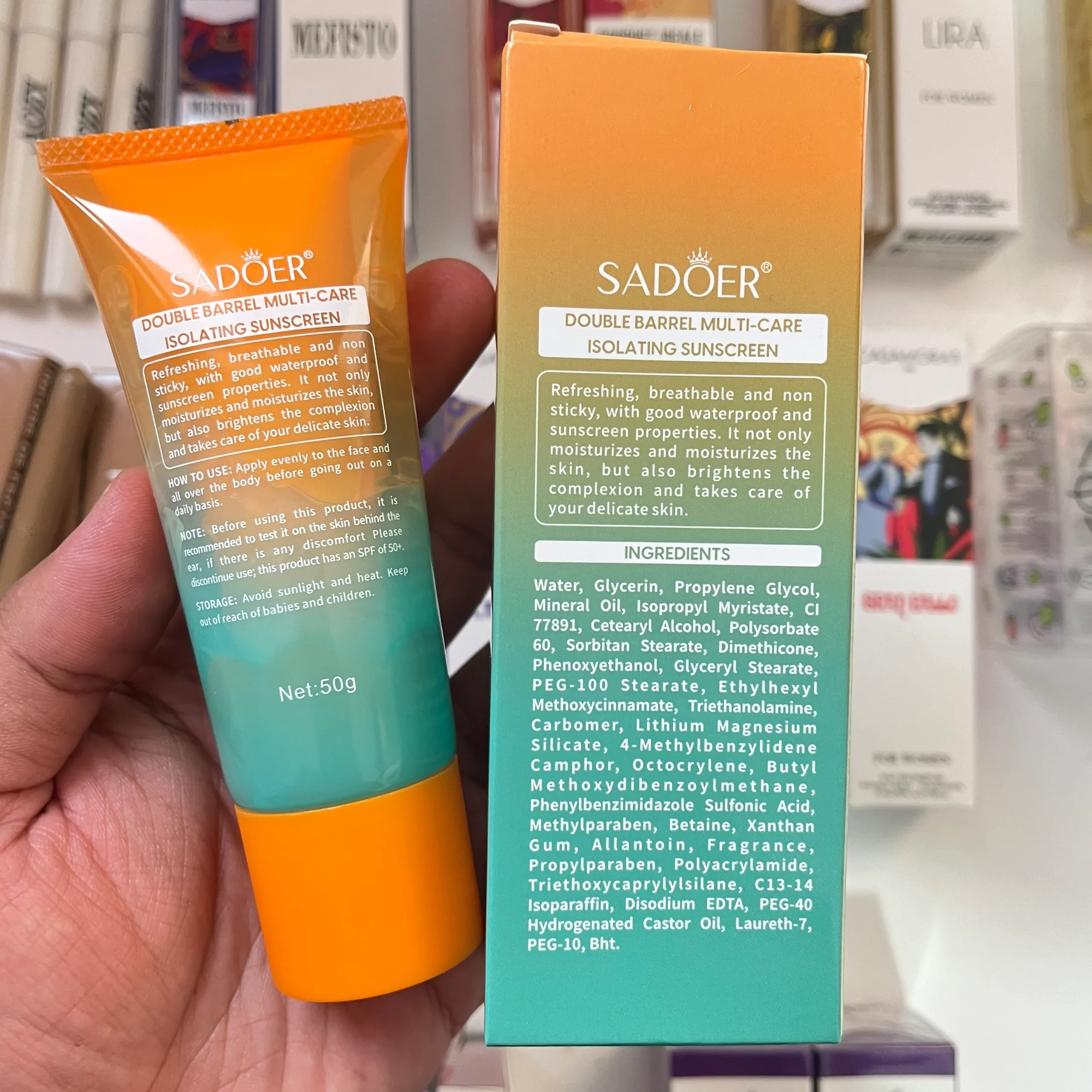 کرم ضد آفتاب SADOER با SPF50+ و +++PA یه محافظ واقعی برای پوستت در برابر اشعههای مضر خورشید (UVA/UVB) هست.